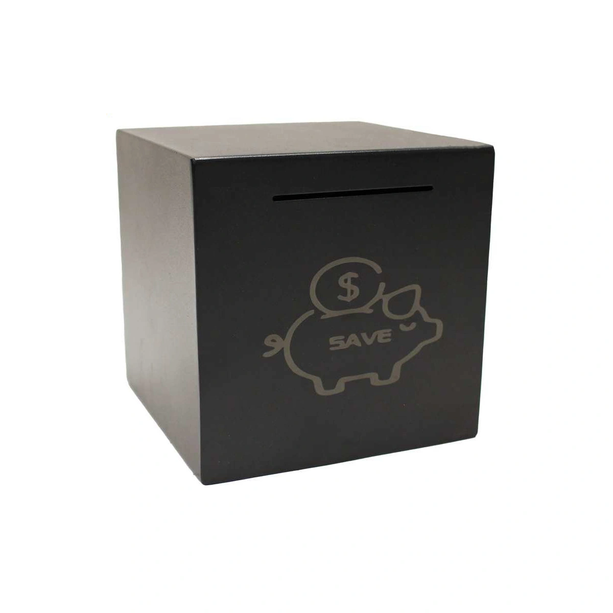 Black Stainless Steel Money Box With No For Coin Removal – (One Corner Of Box Is Softer For Easier Breakage With Hammer)