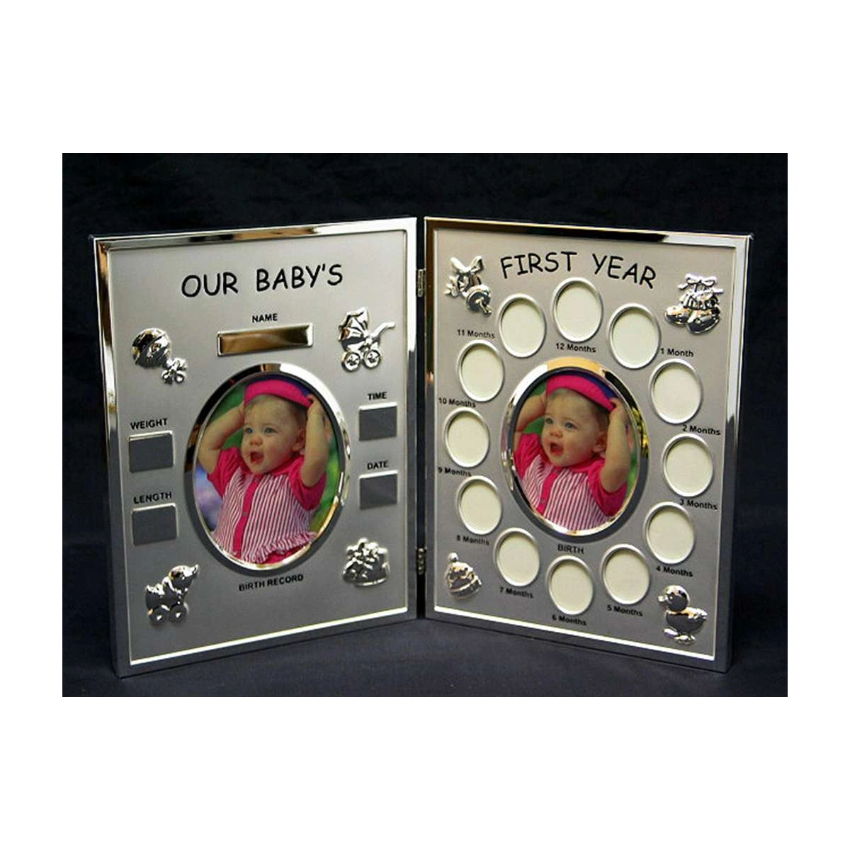 2 Tone Silver Hinged 1St Year Collage Frame Holds 2 And 12- 1 1/; Engraveable