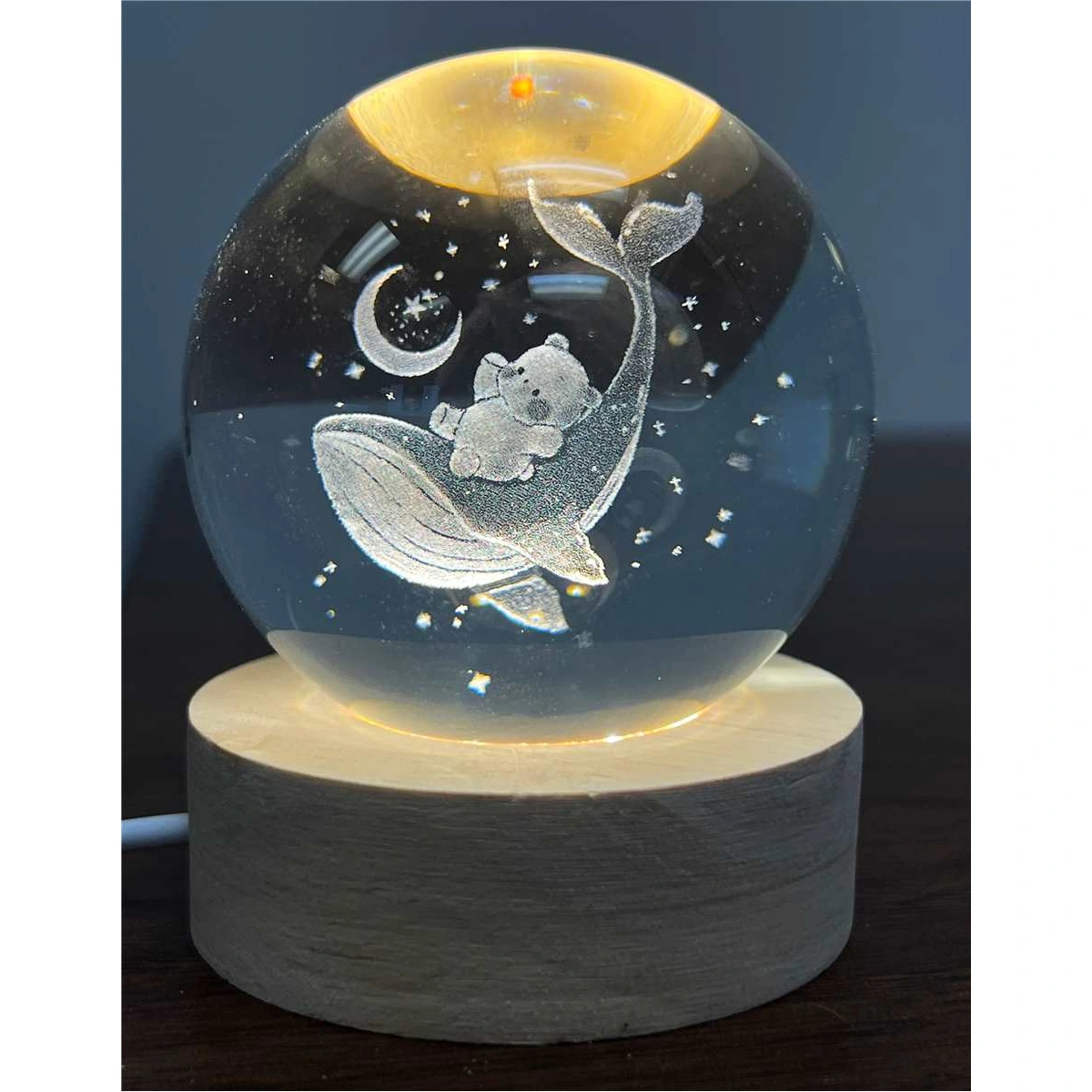 3D Bear/Whale Space Crystal Ball Light With Wood Base- Includes Usb Cord