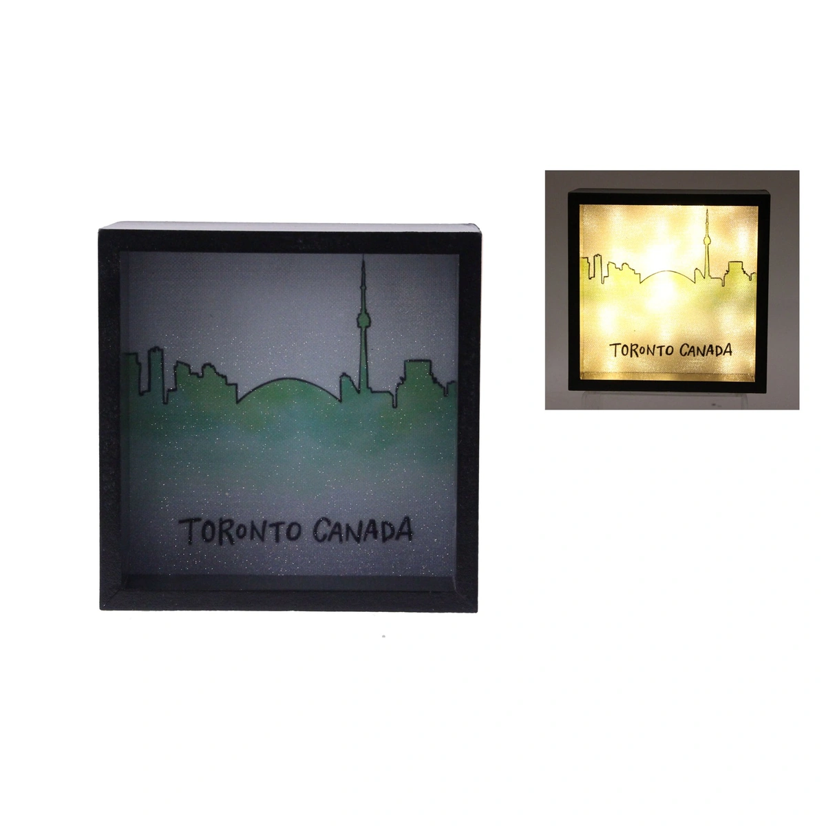 Black Mdf Wood Lite Box-Toronto Canada 2X Aaa Batteries Not Included