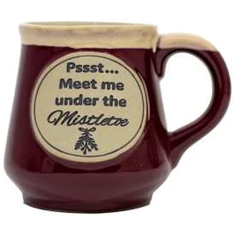 16 OZ RED GLAZED CERAMIC MUG “PSSST…MEET ME UNDER THE MISTLETOE”