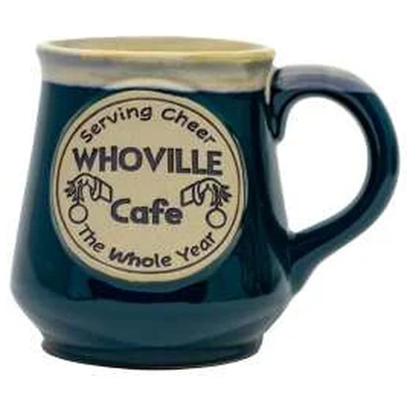 16OZ GREEN GLAZED CERAMIC MUG “WHOVILLE CAFE – SERVING CHEER THE WHOLE YEAR”