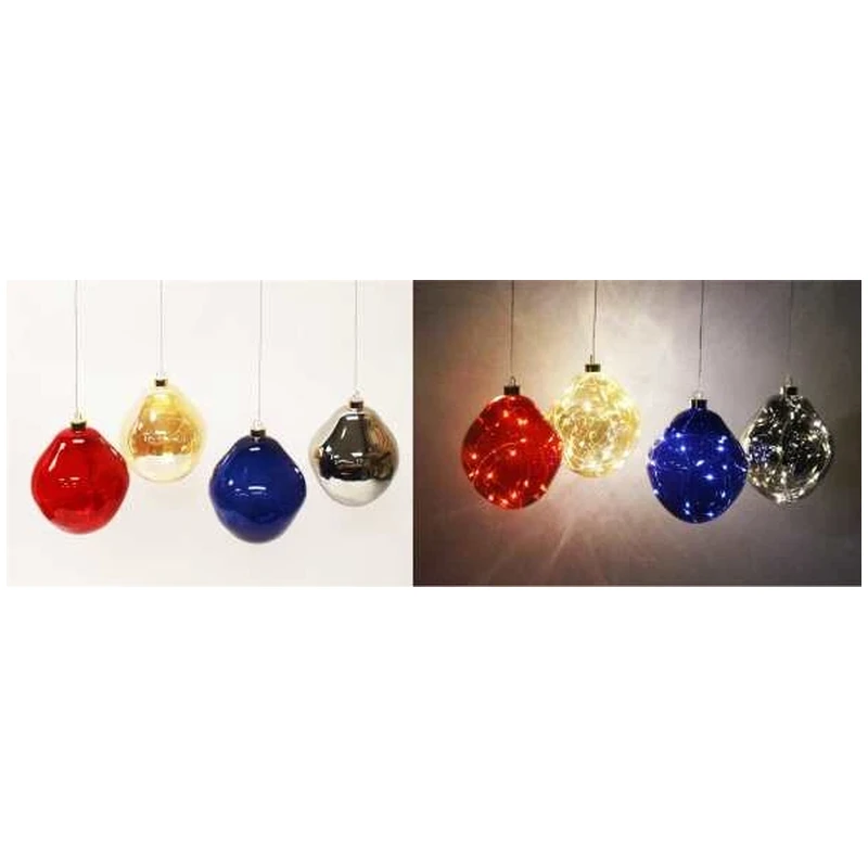 15 CM ORGANIC GLASS BALL ORNAMENT WITH 15 WARM WHITE LEDs. RED, AMBER, ANTHRACITE AND BLUE. WITH TIMER. – REQUIRES 2 AAA BATTERIES