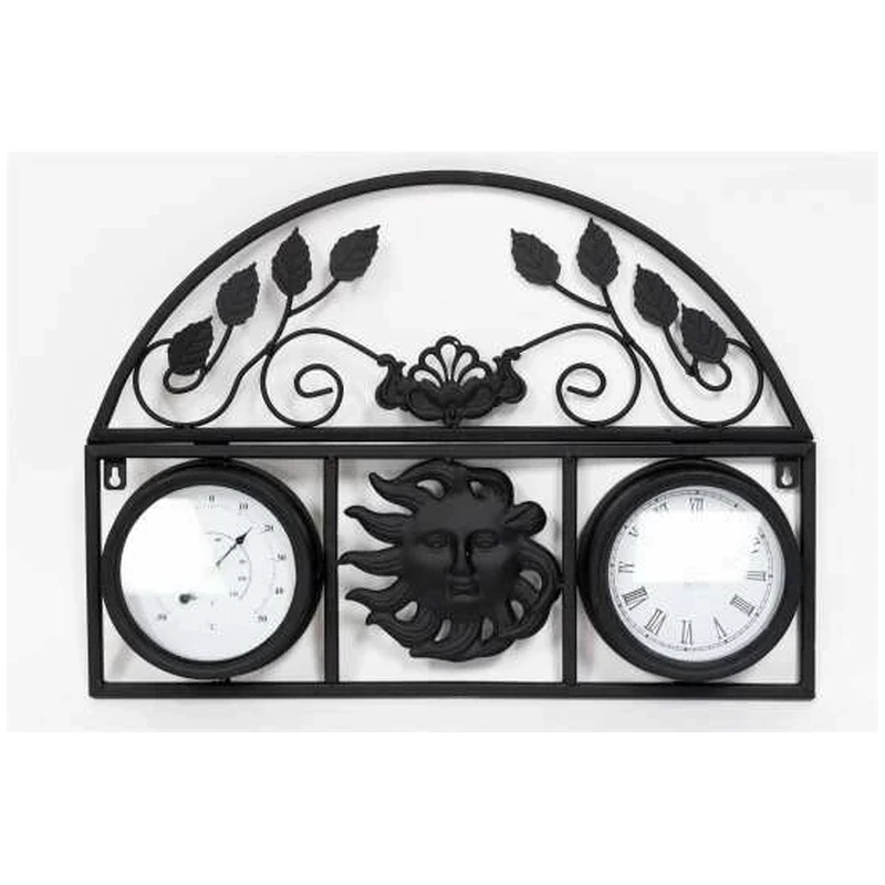 BLK MTL SUN WALL CLOCK/THERMOMETER