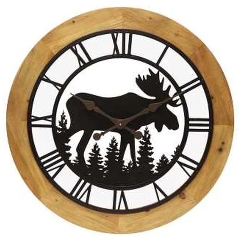 BLK MTL. MOOSE CLOCK W/ WD FRAME