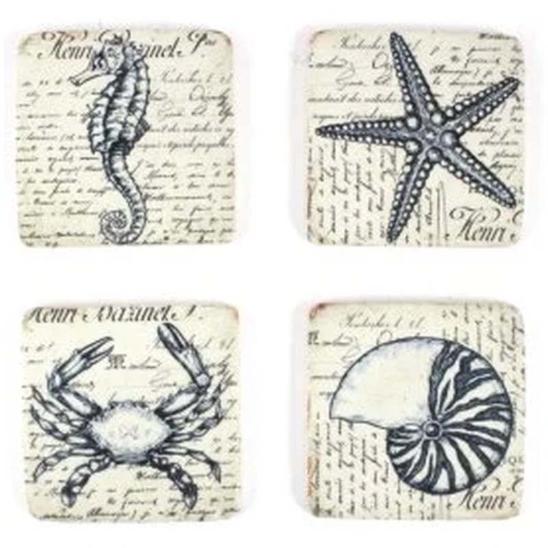 4PC. SQ. RESIN COASTER/MARINE LIFE