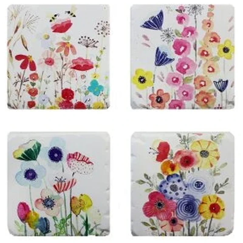 4PC WHT/BLUE FLOWERS COASTERS