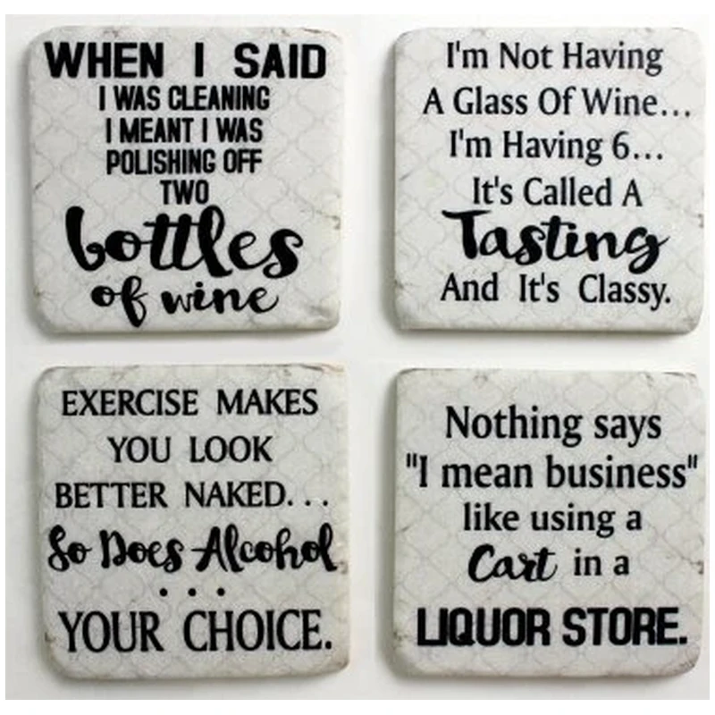 4PC. WHT. COASTER-WINE/ALCOHOL