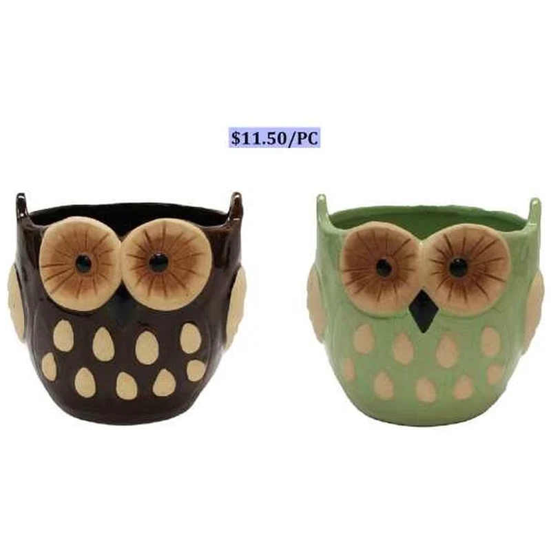 2PC CERAMIC OWL PLANTER SET