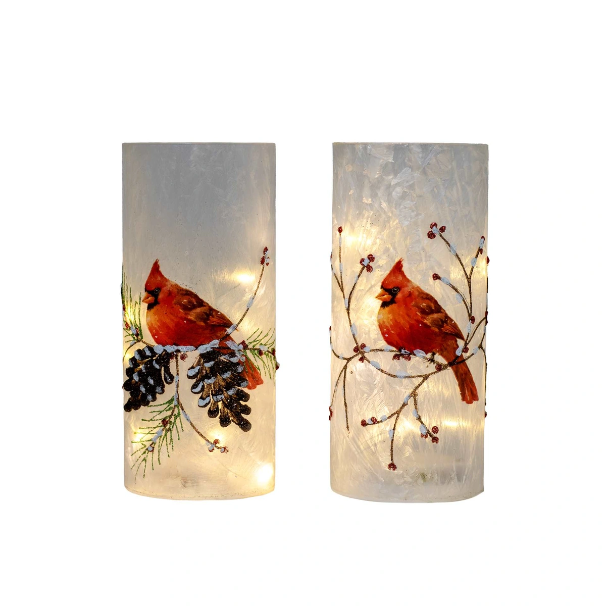 2 Pc Led Glass Column- Cardinal Decal-Requires 3X Aa Batteries