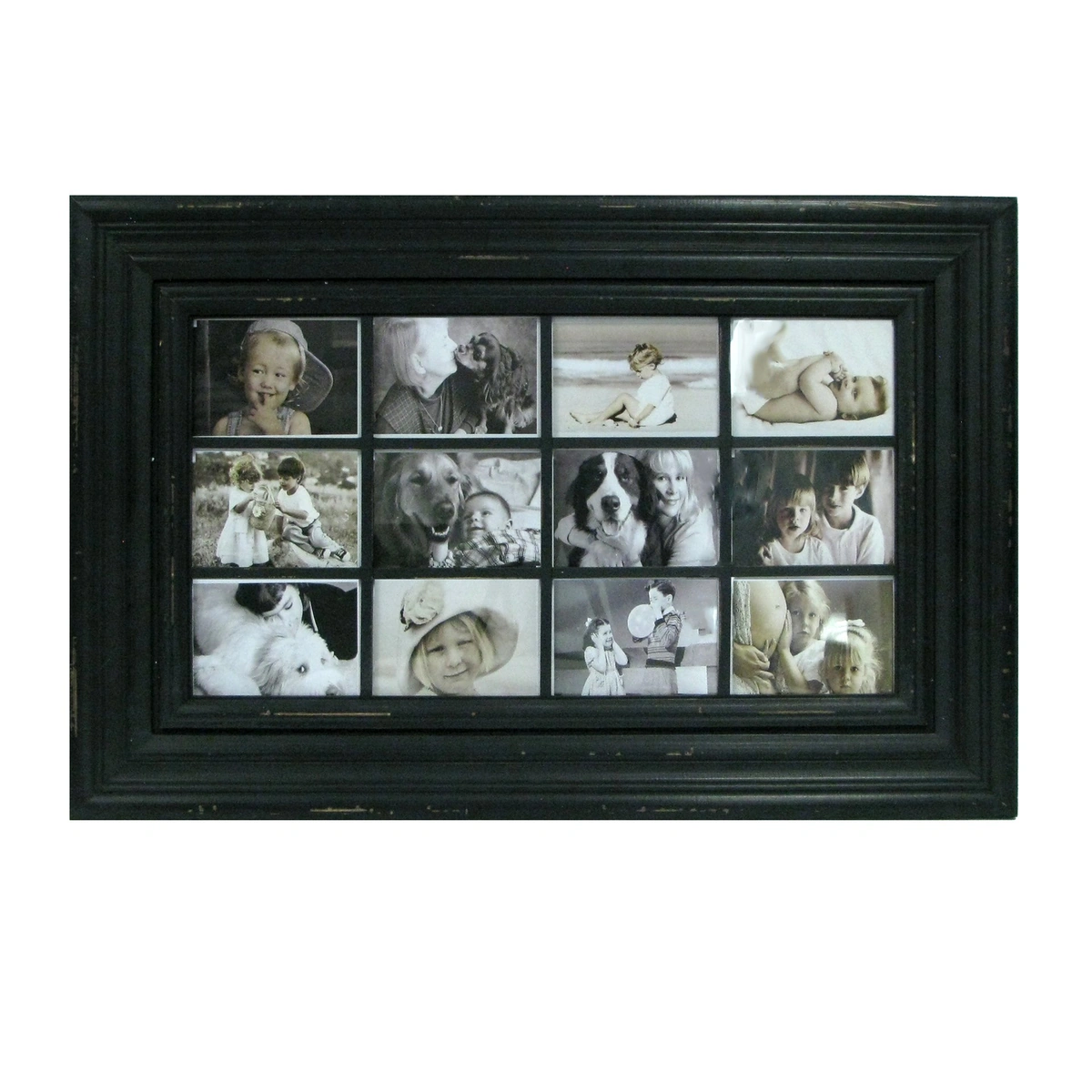 12- Black Distressed Window Collage Frame. Holds Photos