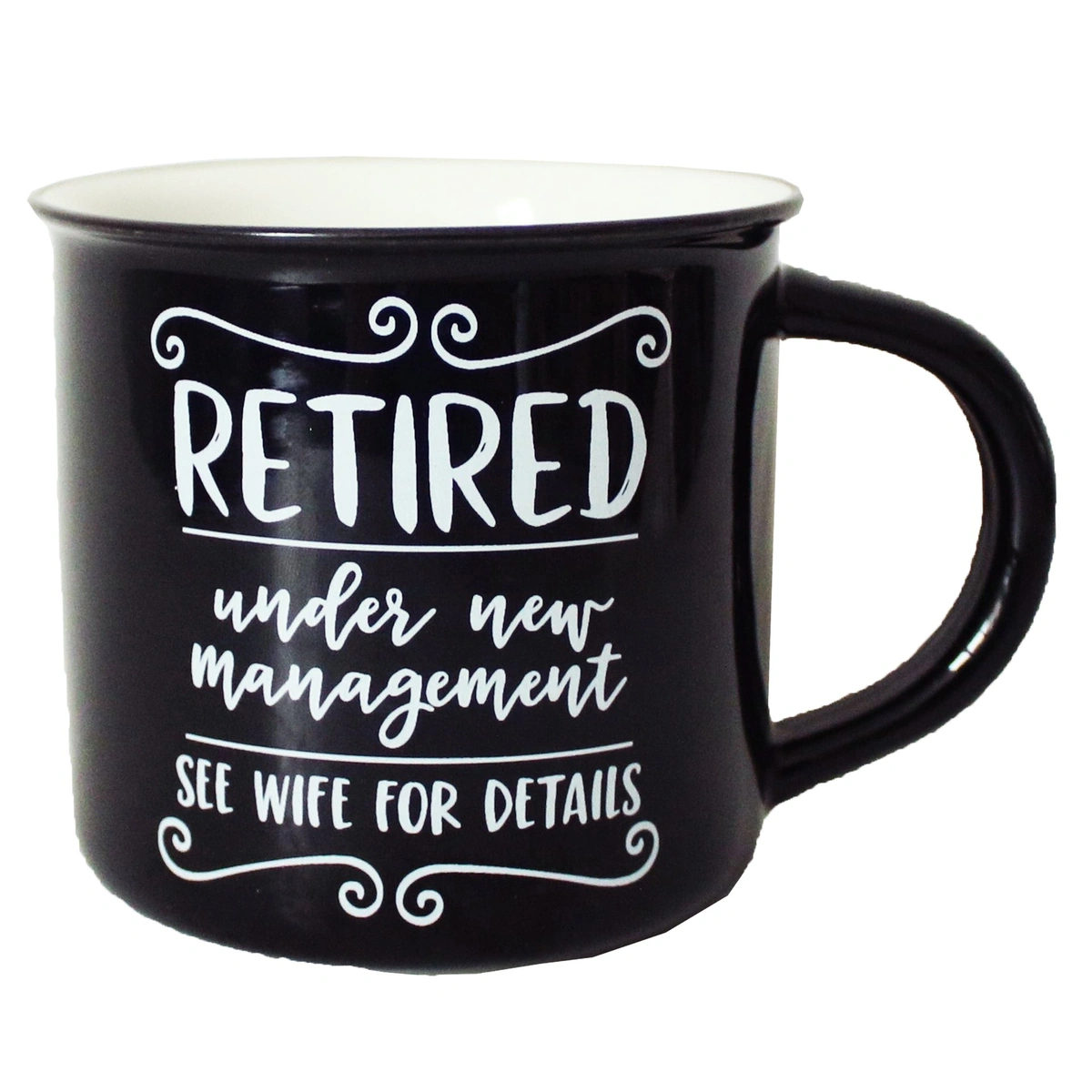 14 Oz Black Ceramic Mug- Retired Under New Management See Wife For Details