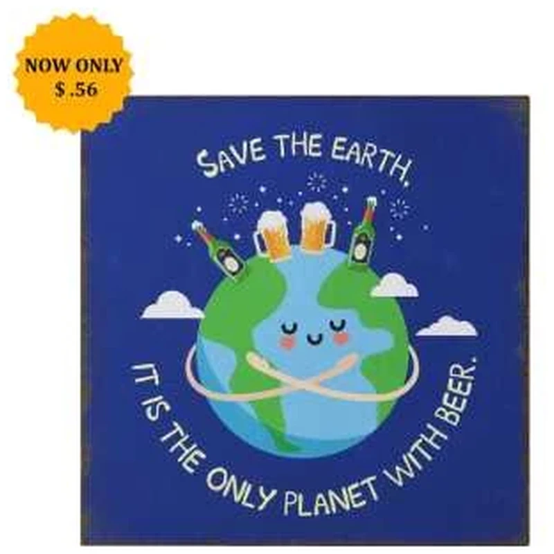 “SAVE EARTH, W/ BEER” MTL WALL ART