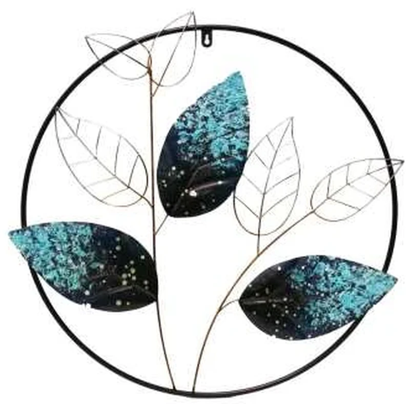 *MTL RND TEAL LEAF WALL ART
