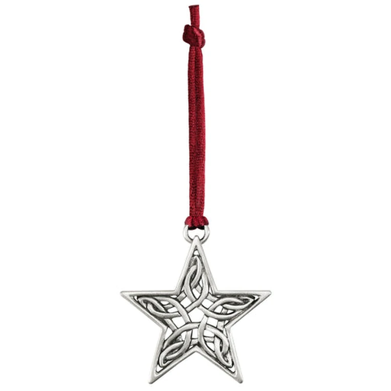 Pewter tree ornament of a Celtic star. Satin or Bright finishes. Gift boxed with cord. Approx. 2″x2.25″ in size.