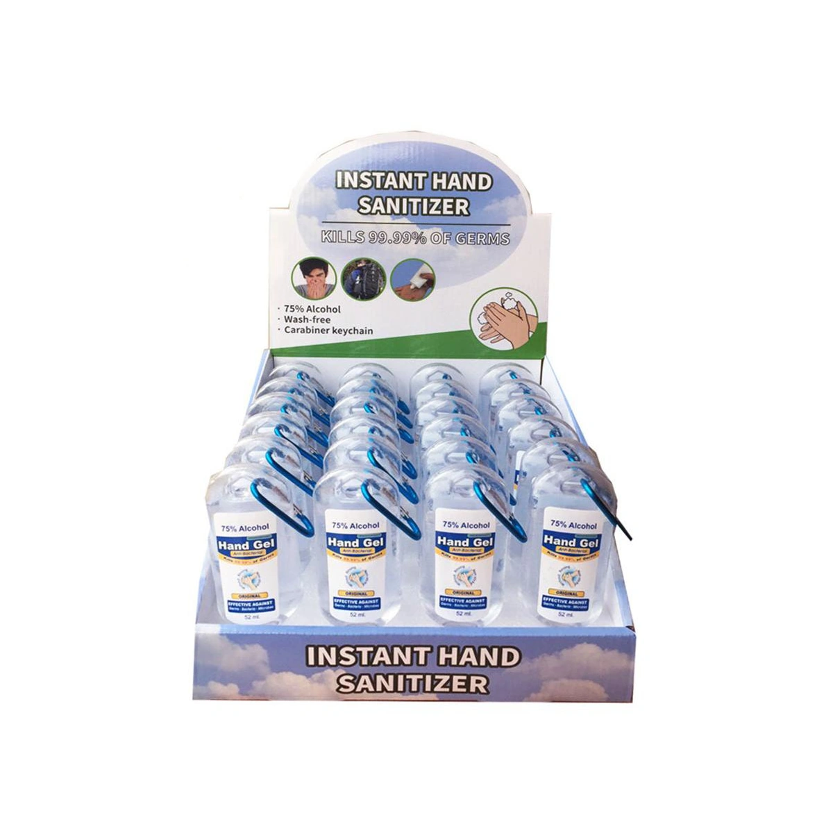 DISPLAY – REFILLABLE 52ml HAND SANITIZER BOTTLE WITH 75% ETHYL ALCOHOL GEL SANITIZER INCLUDED, NPN 80101310; .