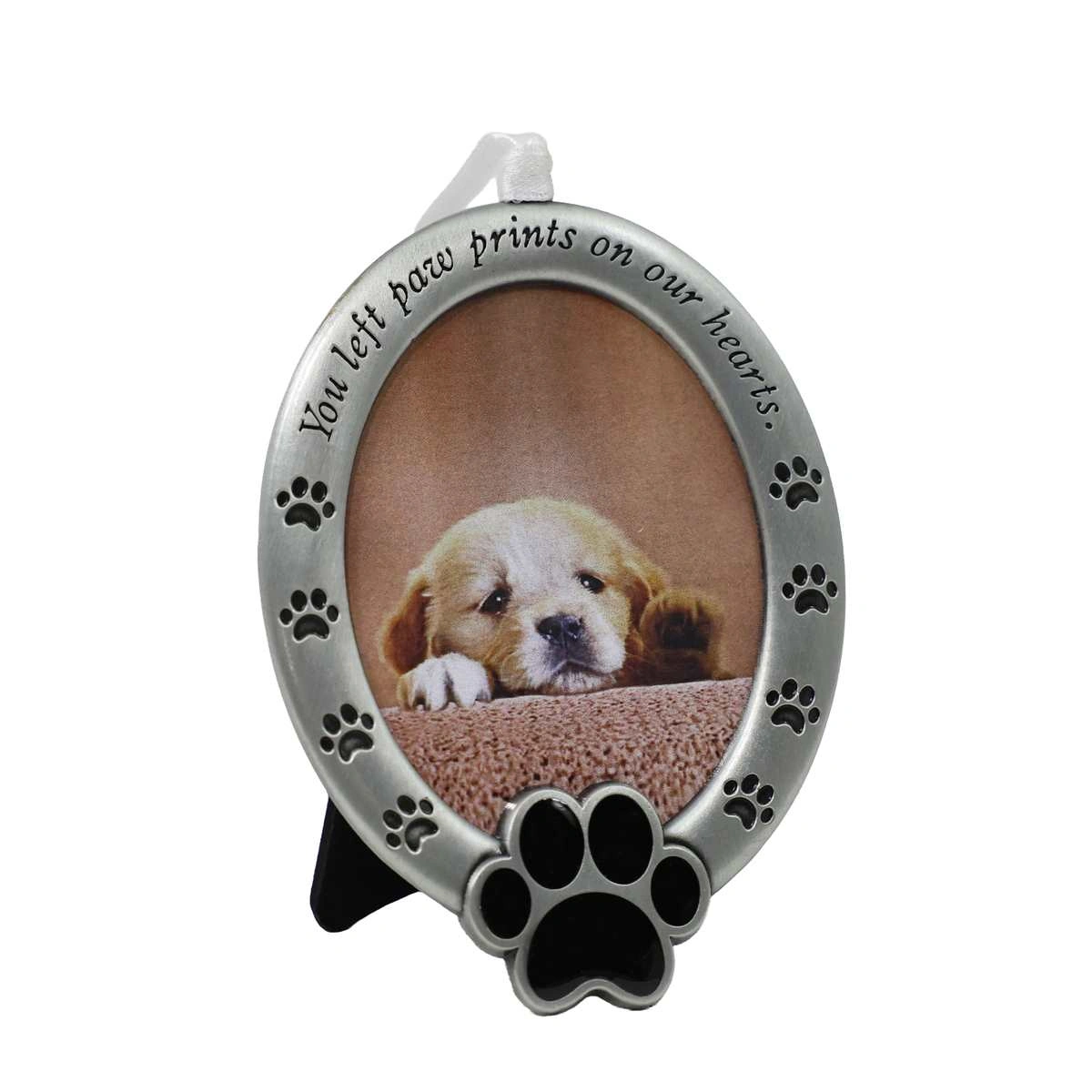 Hanging Oval Pet Memorial Frame- You Left Paw Prints On Our Hearts
