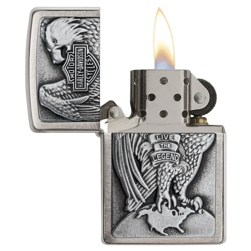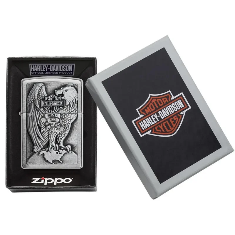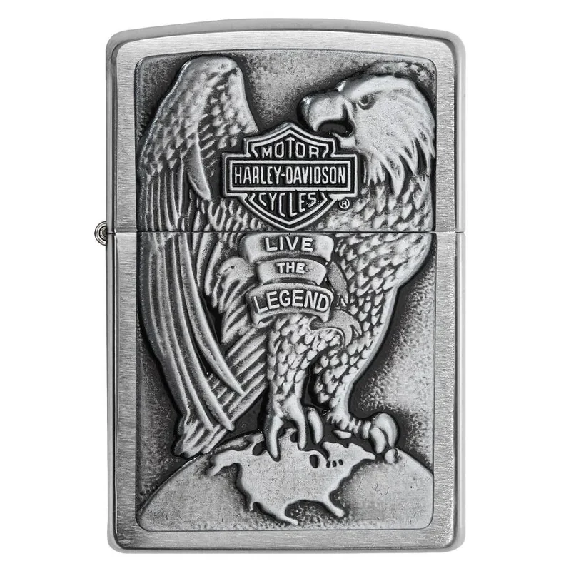 This High Polish Chrome lighter has a Harley-Davidson emblem attached. Comes packaged in a gift box. For optimal performance, fill with Zippo lighter fuel.