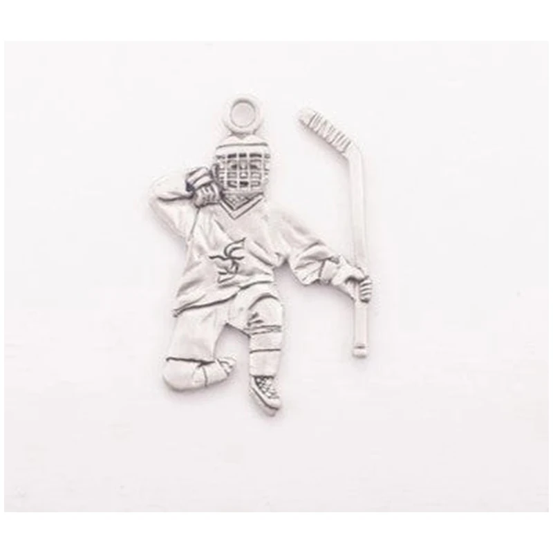 Pewter ornament approx. 2″ of hockey player scoring a goal. Boxed with cord Satin or Bright finish.