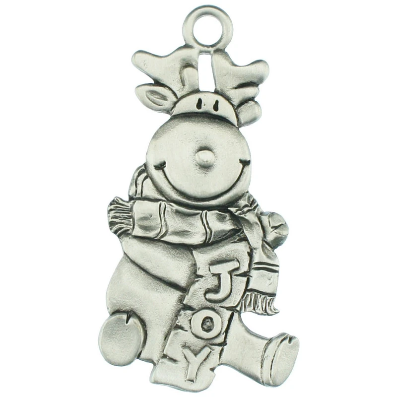 Spread holiday cheer with this cheerful pewter moose ornament celebrating the spirit of JOY! Sized at approximately 2 inches, it’s the perfect addition to any tree. Choose between a soft satin finish or a radiant bright finish to match your décor style. Arrives gift boxed with a hanging cord ready to display. Proudly Made in Canada!