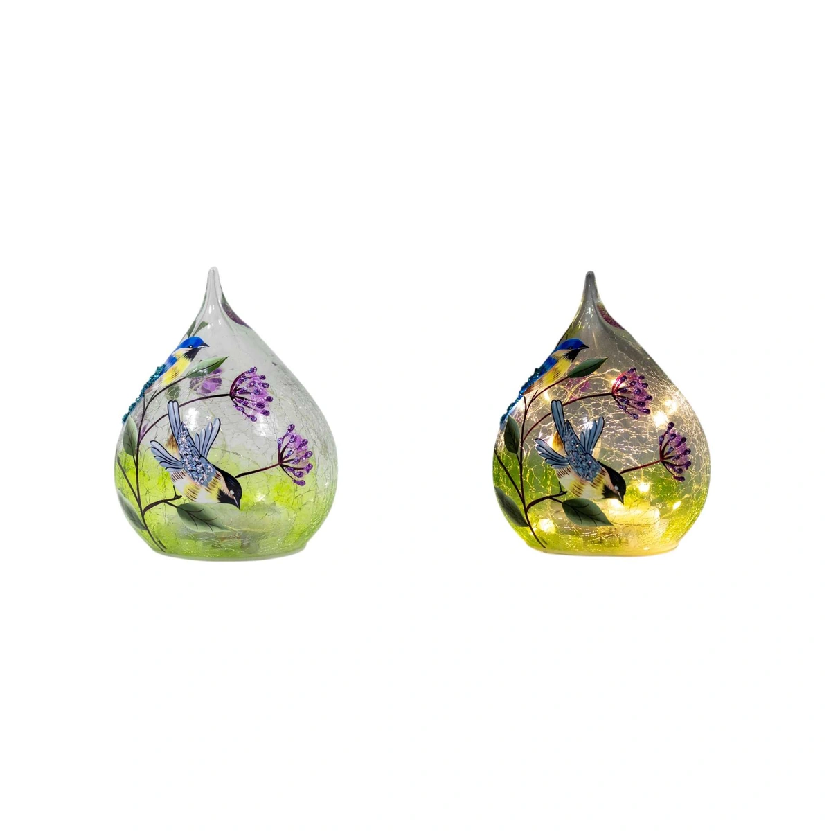 / LED GLASS BLUE BIRD TEAR DROP DECOR