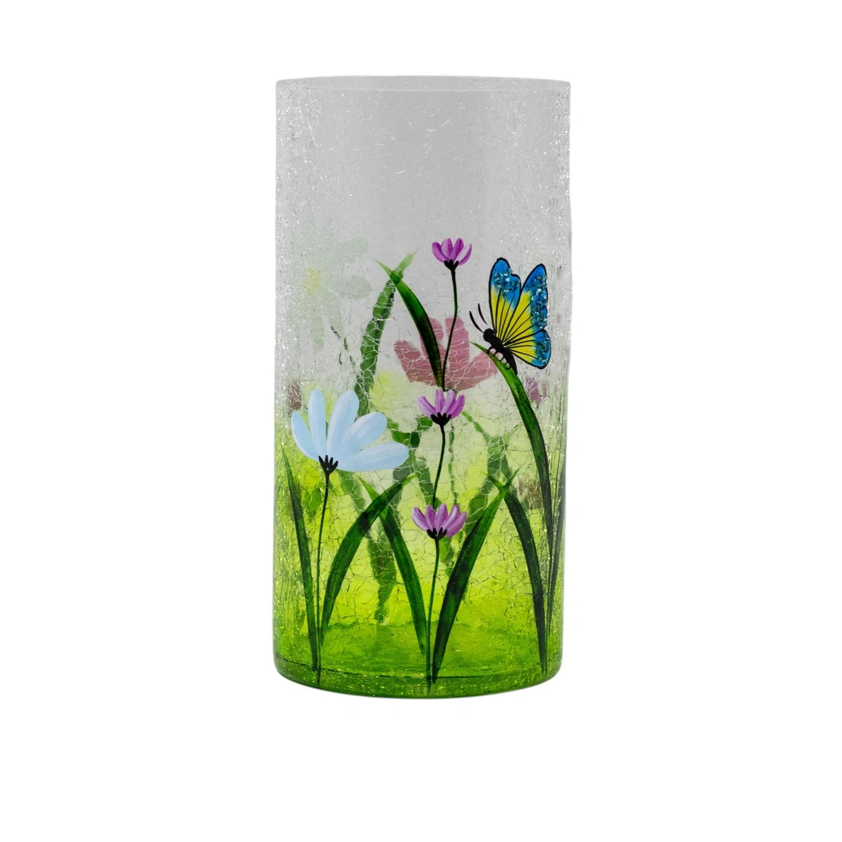 LED GLASS CYCLINDER WITH FLOWERS AND BUTTERFLY