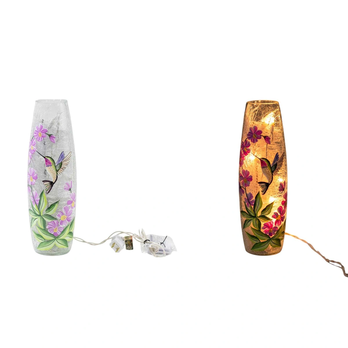 / LED GLASS CYLINDER- HUMMINGBIRD DECAL