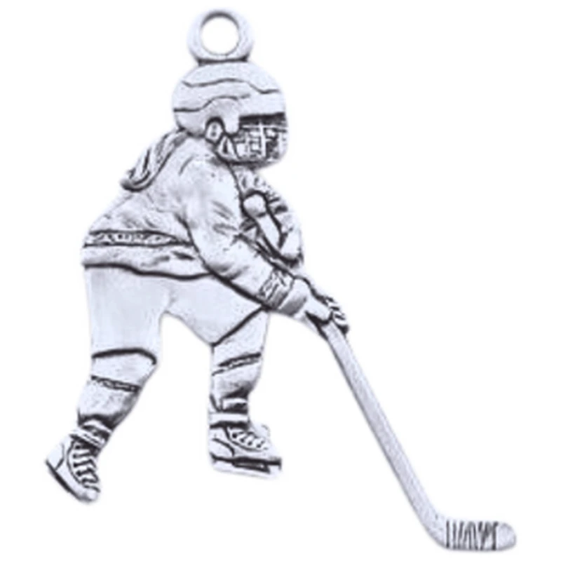 Pewter ornament, approx. 2.25″. Female hockey player. Boxed with cord included.